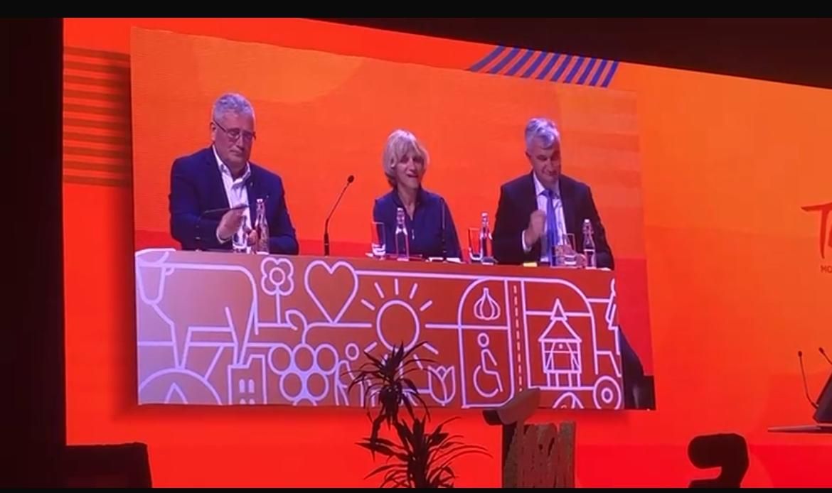 Quelques minutes plus tôt dans la matinée, la présidente du Département avait été invitée à participer à une table-ronde intitulée "Agriculture et viticulture au cœur de notre héritage et de notre avenir". Elle y avait partagé l'expérience vécue lors du méga feu, et les enseignements que l'on en avait tirés. Notamment le lien qui a pu être fait entre l'arrachage des vignes et la progression fulgurante de l'incendie. "Il faut que ce feu soit le détonateur d'une prise de conscience. Il est venu nous montrer ce qu'il se passe quand l'agriculture recule." Et d'évoquer les vignes qui, durant des siècles, ont façonné le paysage audois et qui sont aujourd'hui disparaissent alors que la viticulture subit une crise économique autant que le changement climatique. "Là où nous avions des vignes, aujourd'hui nous avons des friches et quand on a des friches, le feu dévore tout", a témoigné Hélène Sandragné, avant d'interpeller le ministre de la Ruralité Michel Fournier, présent sur scène : "Si on ne prend pas ce sujet à bras le corps, ce sont des territoires qui vont disparaître. Car aujourd'hui, la question qui nous est posée est celle de l'habitabilité : Comment fait-on pour y vivre ? (...) Il faut commencer à faire de ces territoires exposés aux risques climatiques et aux incendies des territoires d'exception. Il faut les modéliser. Ce qu'on fera chez nous, demain, on pourra le faire ailleurs."